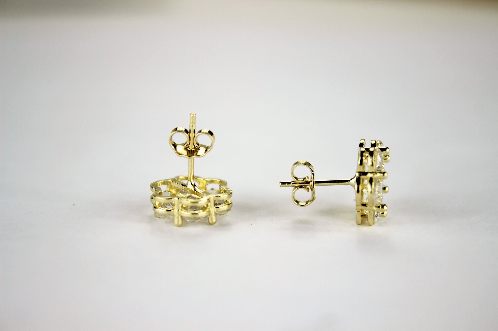 10K Yellow Gold Flower Stud Earrings with CZ 3 sizes