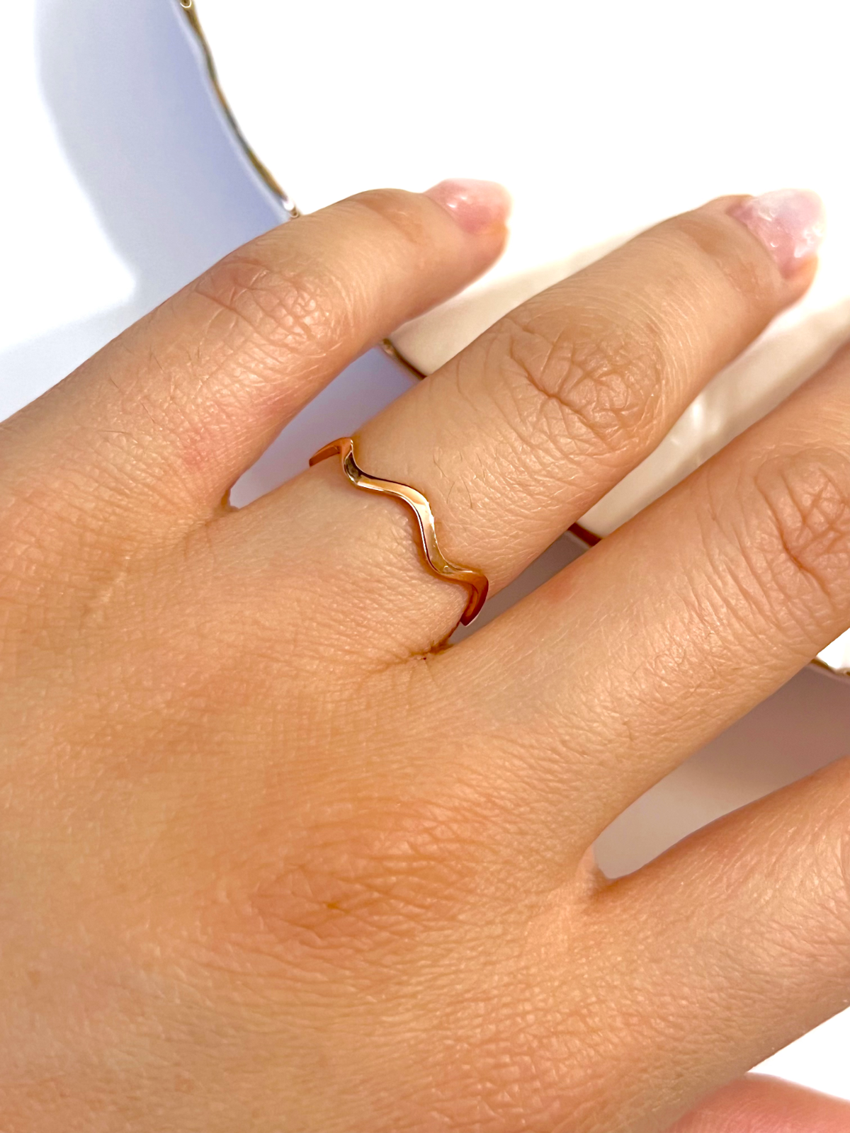14K Solid Gold Handmade Thin Zigzag Wave Ring Band