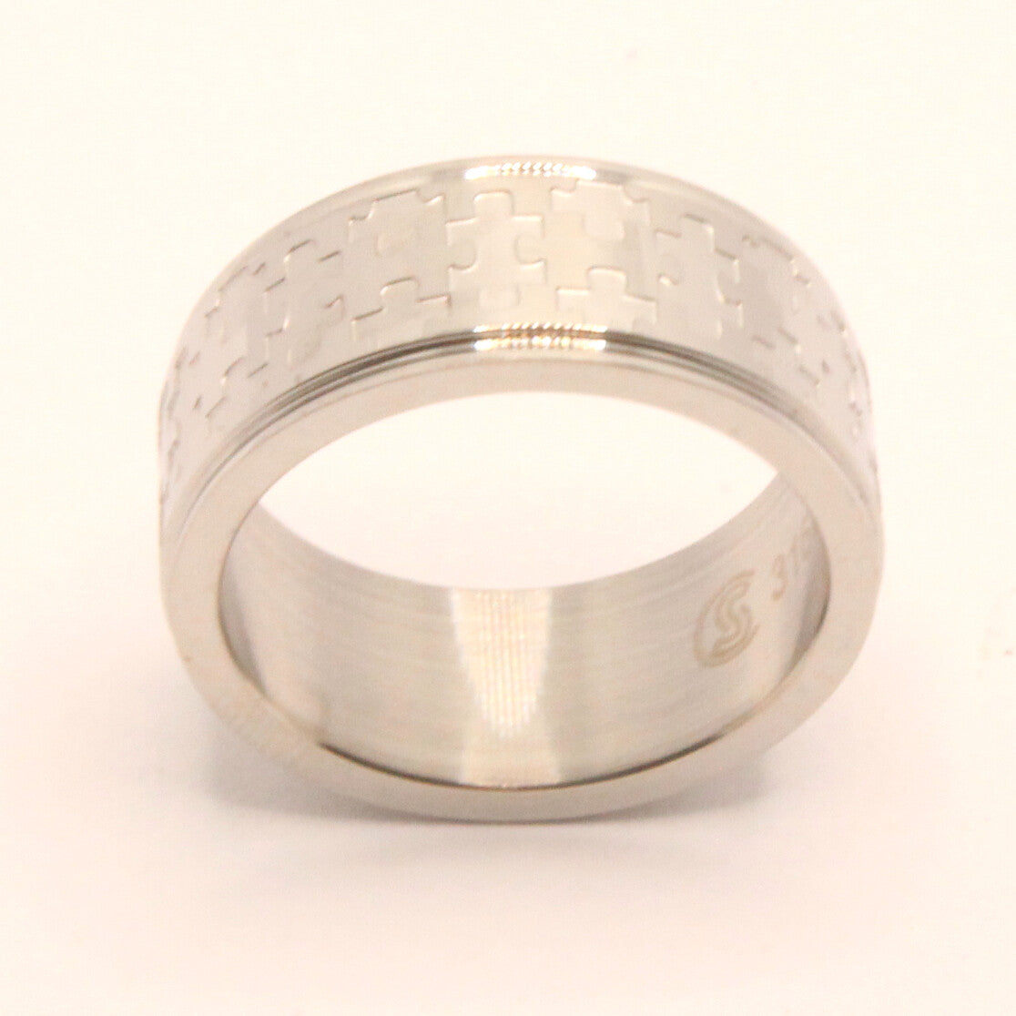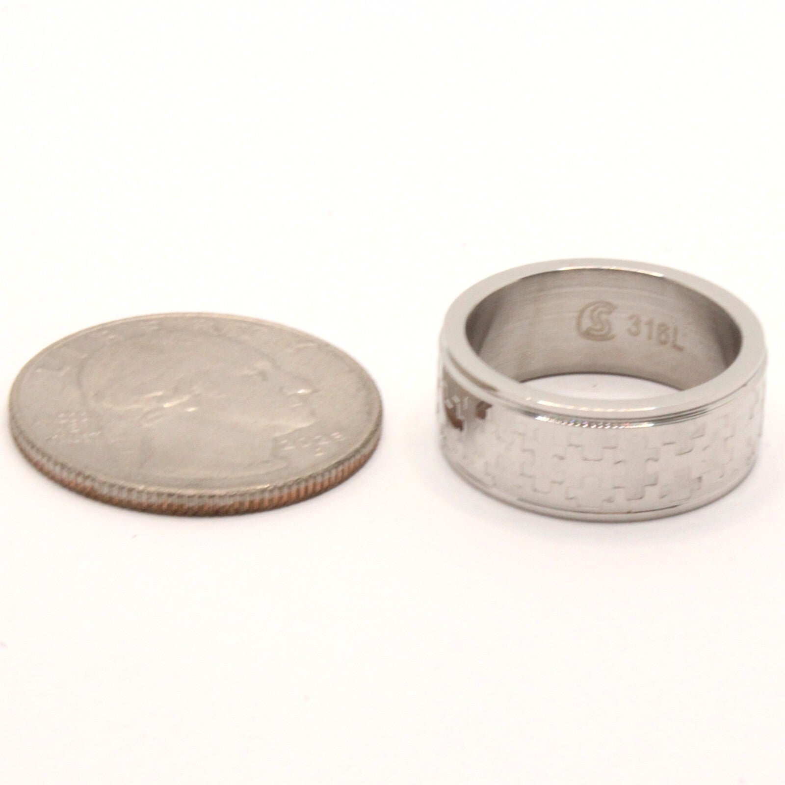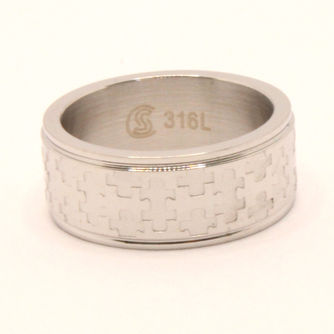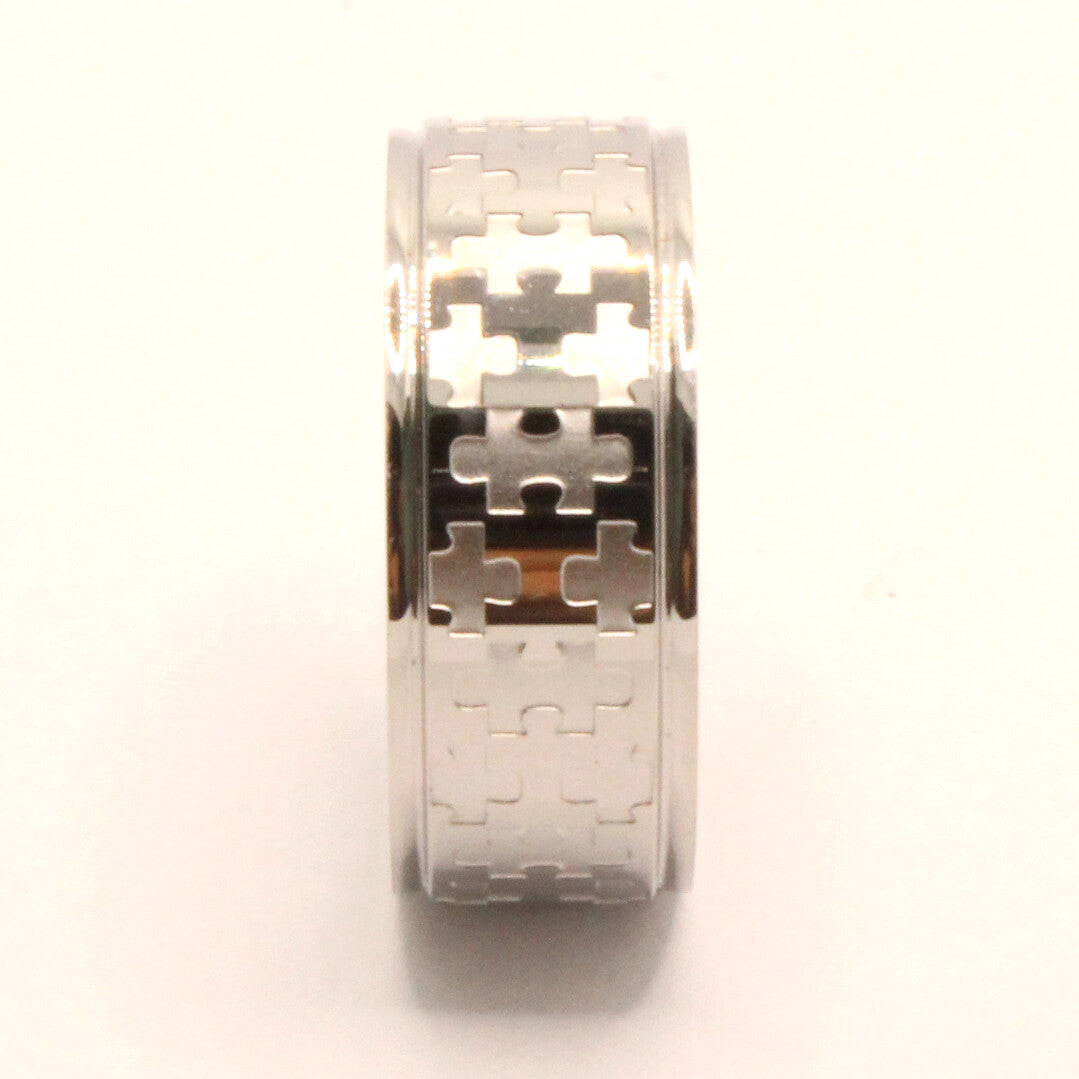 Stainless Steel Flat Simple Jigsaw Puzzle Pattern Wedding Band Ring 8mm